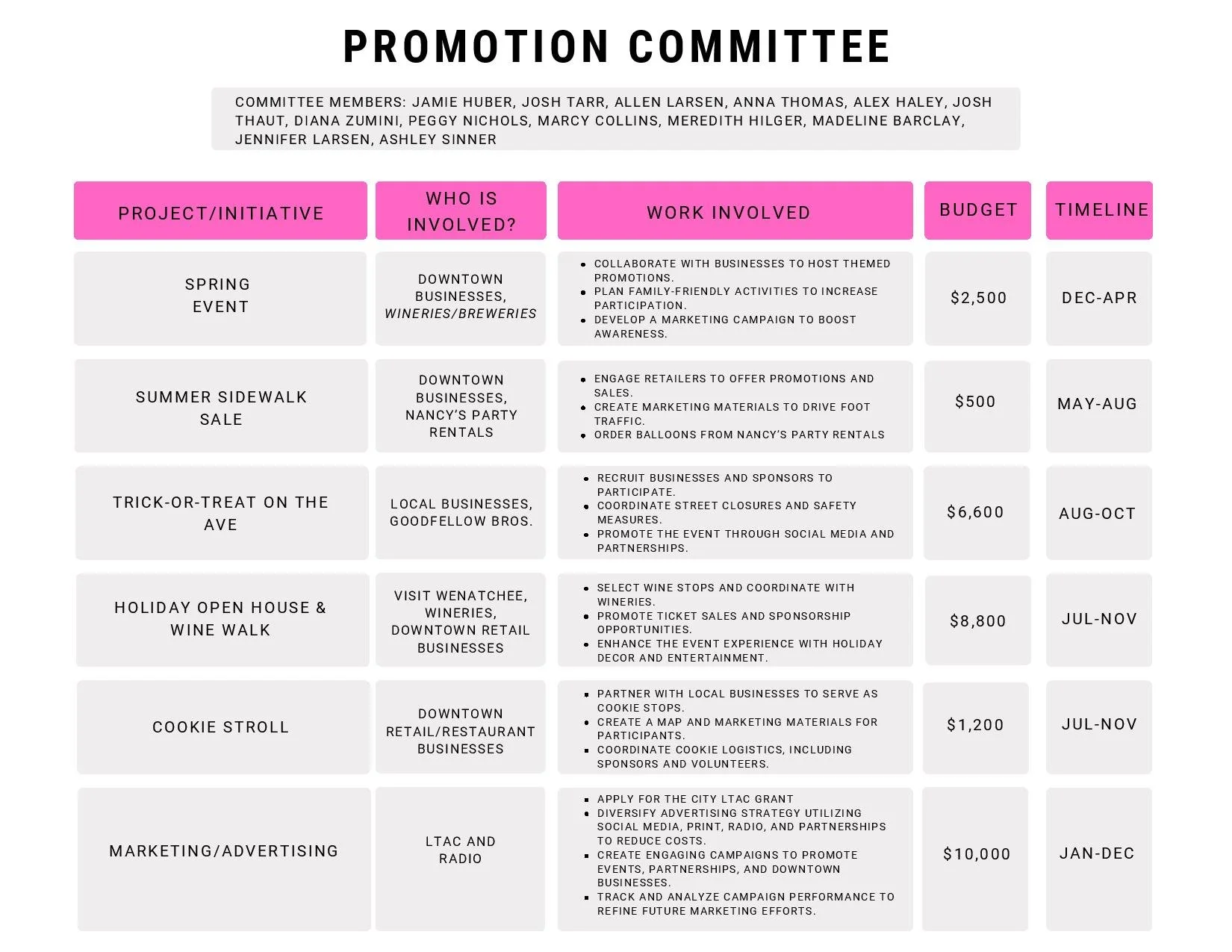 The Wenatchee Downtown Association is constantly seeking volunteers to join us! If you're interested, we encourage you to explore our committee options, apply for a future board position, or contact us directly to learn more about other opportunities.