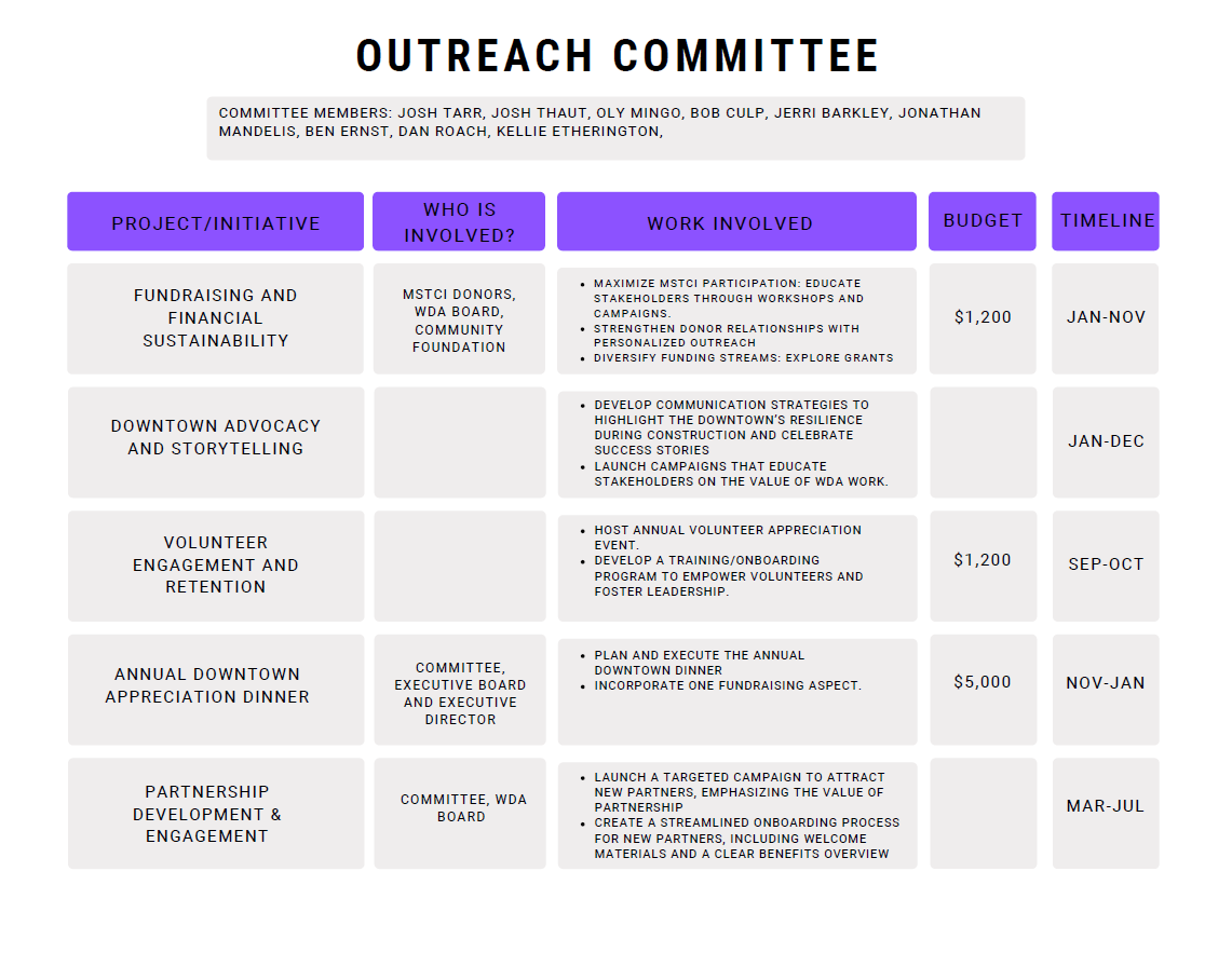 Welcoming & Inviting: We create a friendly, inclusive downtown where everyone feels valued and welcome.