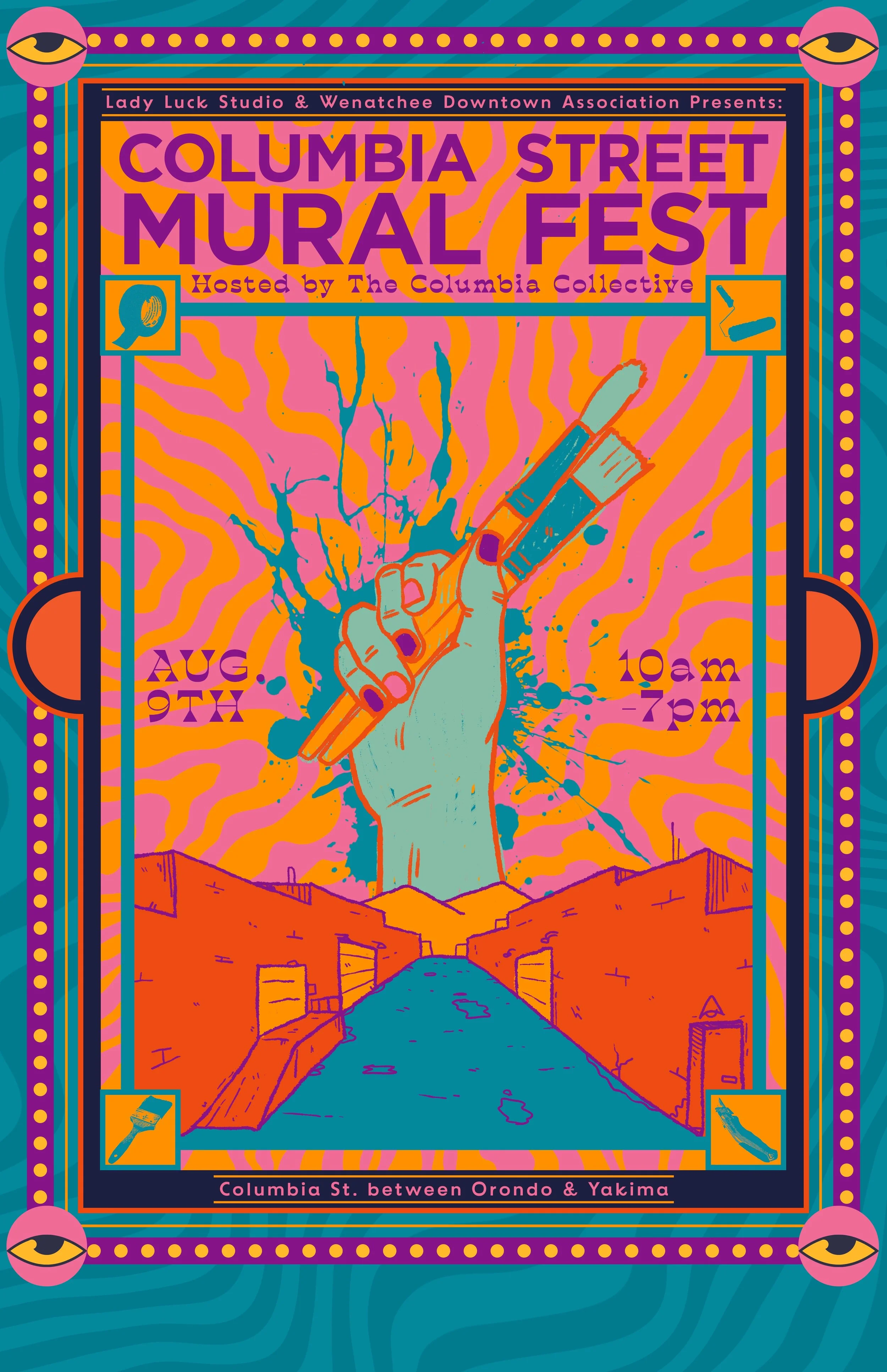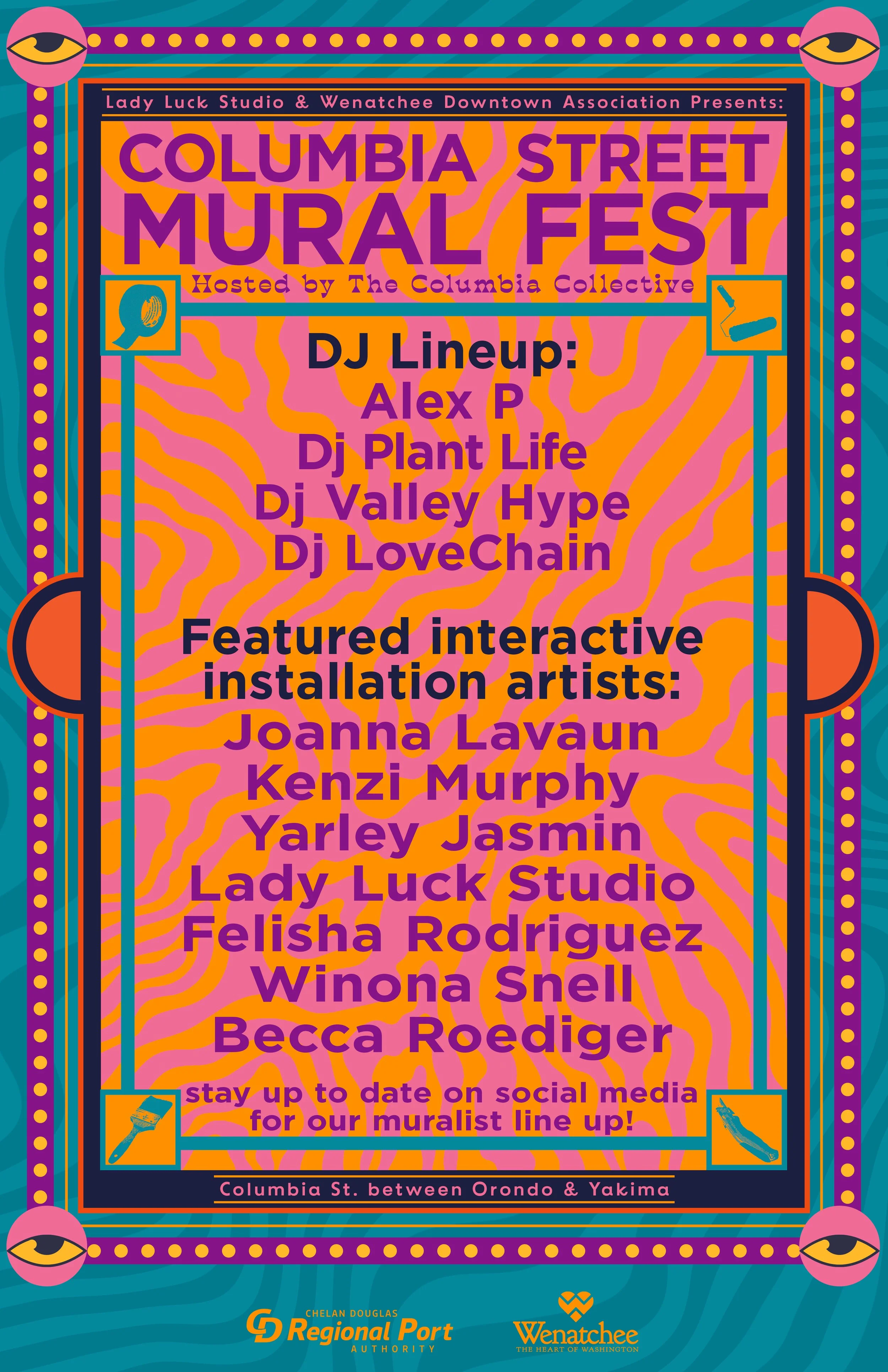 The Columbia Street Mural Fest brought color, creativity, and community spirit to Downtown Wenatchee—and now you have the chance to take a piece of it home! We’re auctioning off select festival murals to raise funds for future public art projects, supporting local artists, and keeping our downtown vibrant. Every bid helps ensure that murals, music, and community experiences continue to thrive in downtown Wenatchee!